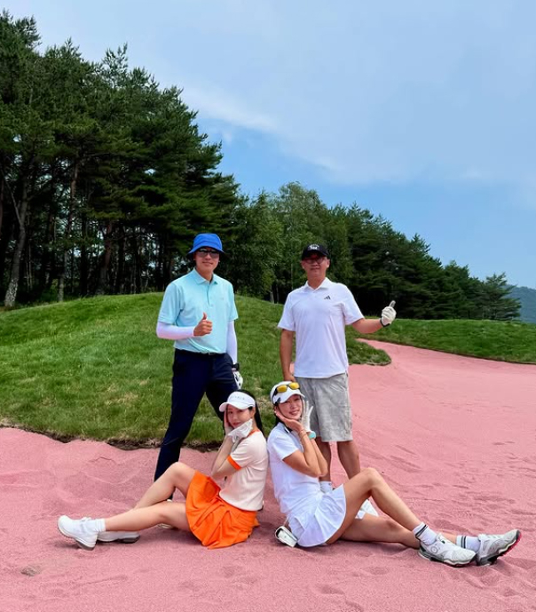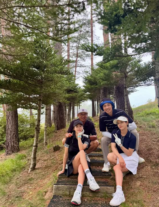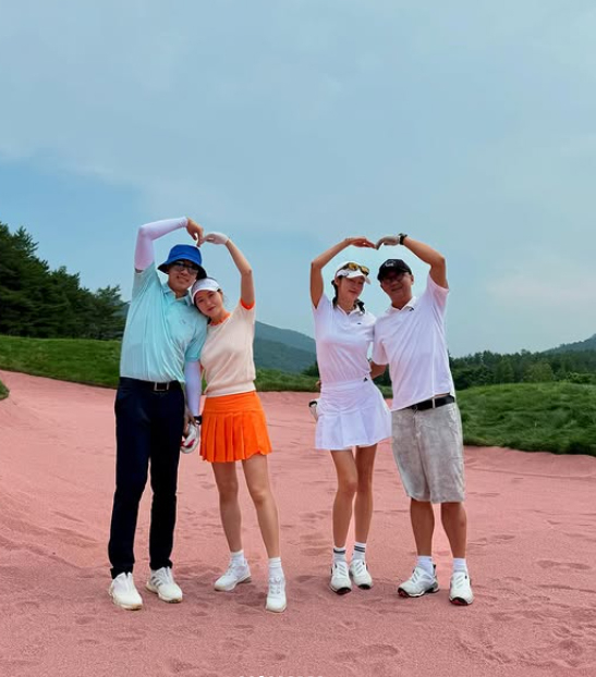 공개된 사진에서는 최여진·김재욱 부부와 박하나·김태술 부부가 함께 골프장 모래 벙커와 숲길 등에서 라운딩을 즐기며 다정한 포즈를 취하고 있다. 두 부부는 하트 포즈를 만들거나, 자연 속에서 여유로운 분위기를 연출하며 친분을 과시했다.