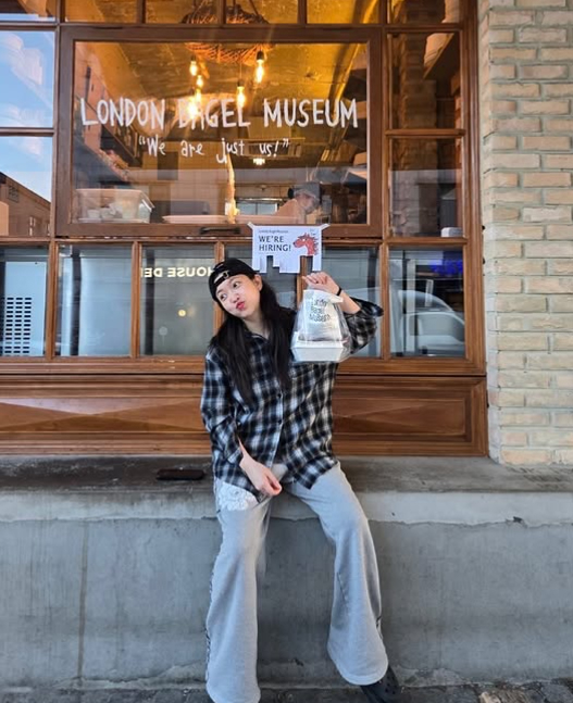 캐주얼한 체크 셔츠와 편안한 트레이닝 팬츠 차림으로 카페 앞에 앉아 여유로운 분위기를 자아내는가 하면 또 다른 사진에서는 데님 셋업과 크롭티를 매치해 트렌디하면서도 건강미 넘치는 모습을 선보였다.