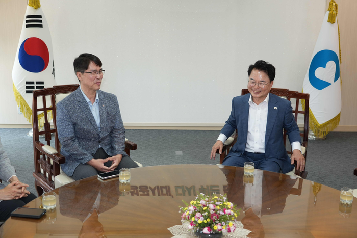 [스포츠서울ㅣ춘천=김기원기자]육동한 춘천시장은 9일 시청 서문 인근 헌혈버스에서 열린 춘천시 단체헌혈 릴레이 행사에 참석하고 박진성 강원혈액원장과 면담을 가졌다.