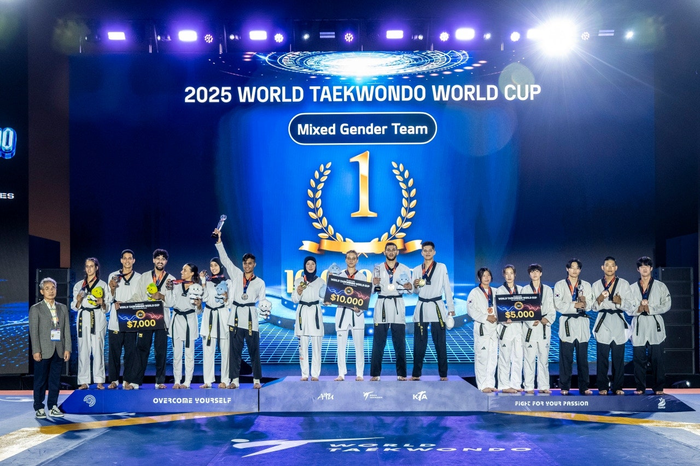 혼성 단체전은 남녀 선수가 함께 출전하는 경기 형식으로 빠른 템포와 유기적인 움직임이 어우러져 태권도의 속도감과 팀 전술의 진수를 보여준다. 치열한 접전 끝에 최종 우승은 우즈베키스탄에게 돌아갔다. 결승에서 모로코를 상대한 우즈베키스탄은 민첩한 전술 운용과 조직력으로 경기를 주도하며 정상에 올랐다. 모로코는 준우승을 차지했다.