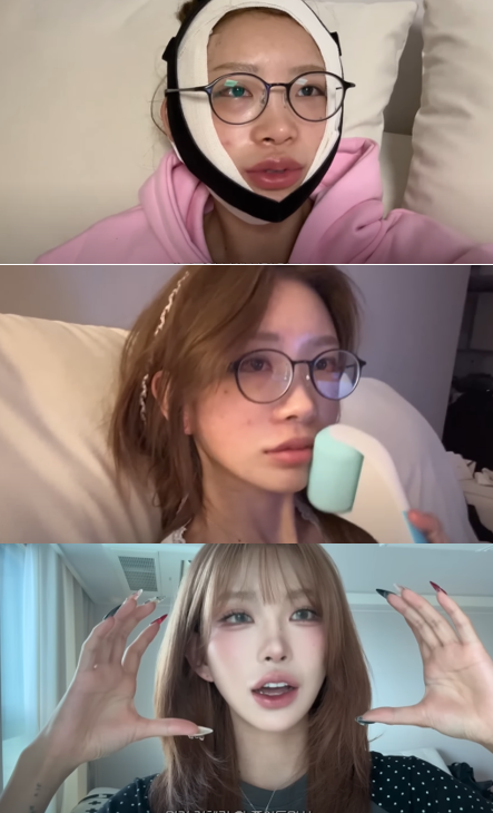 영상에서 최준희는 붕대를 감은 채 등장해 자신의 광대 성형과 눈 밑 뒷트임 수술직후 모습을 공개했다.