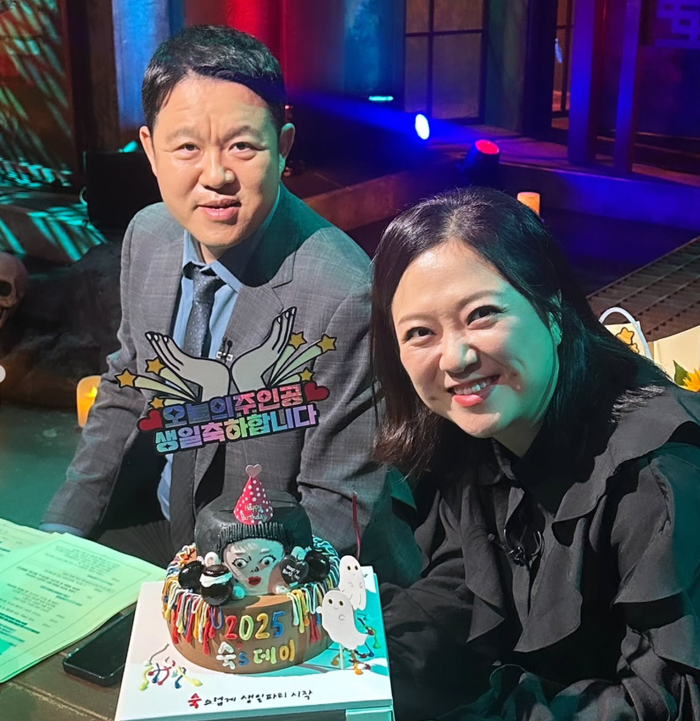 또한 녹화 현장에서 김구라와 함께 앉아 ‘2025 숙데이’라는 문구가 적힌 케이크를 인증하며, 동료들과의 돈독한 우정을 드러냈다.