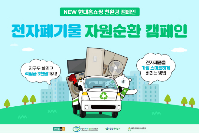 현대홈쇼핑은 폐전자제품을 수거해 자원으로 재활용하는 캠페인을 진행하며 “전국 주요 아파트 단지에 체험 부스를 마련하고, 폐가전을 가져오는 고객에게는 친환경 업사이클링 굿즈를 증정한다”고 밝혔다.