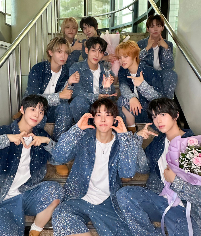 이는 SBS funE ‘더쇼’와 MBC M ‘쇼! 챔피언’에 이은 세 번째 1위로 아홉은 데뷔 10일 만에 ‘뮤직뱅크’ 트로피까지 들어올리며 3관왕을 달성했다.