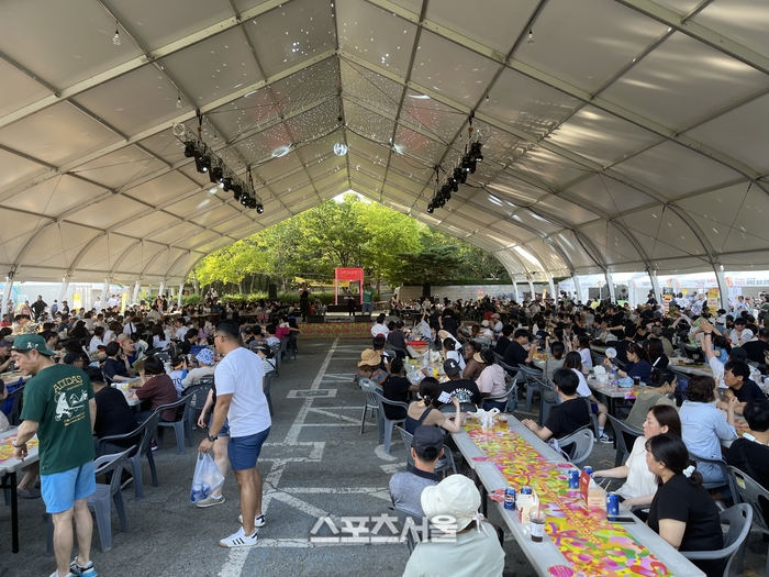 어린이들은 흠뻑 젖을 수 있었다. 분수 광장에선 쉴 새 없이 물이 솟아 나왔다. 닭똥 같은 땀을 줄줄 흘리던 아이들도 무더위를 피해 분수에 몸을 맡기고 놀았다. 그 옆엔 또 ‘치맥 물총 서바이벌’도 열렸다. 사회자의 구호에 맞춰 상대방을 향해 물총을 쏘고 흠뻑 젖었다. 승패는 중요하지 않았다. 폭염을 잊고 축제를 즐길 수 있다는 사실에 모두가 행복해했다.