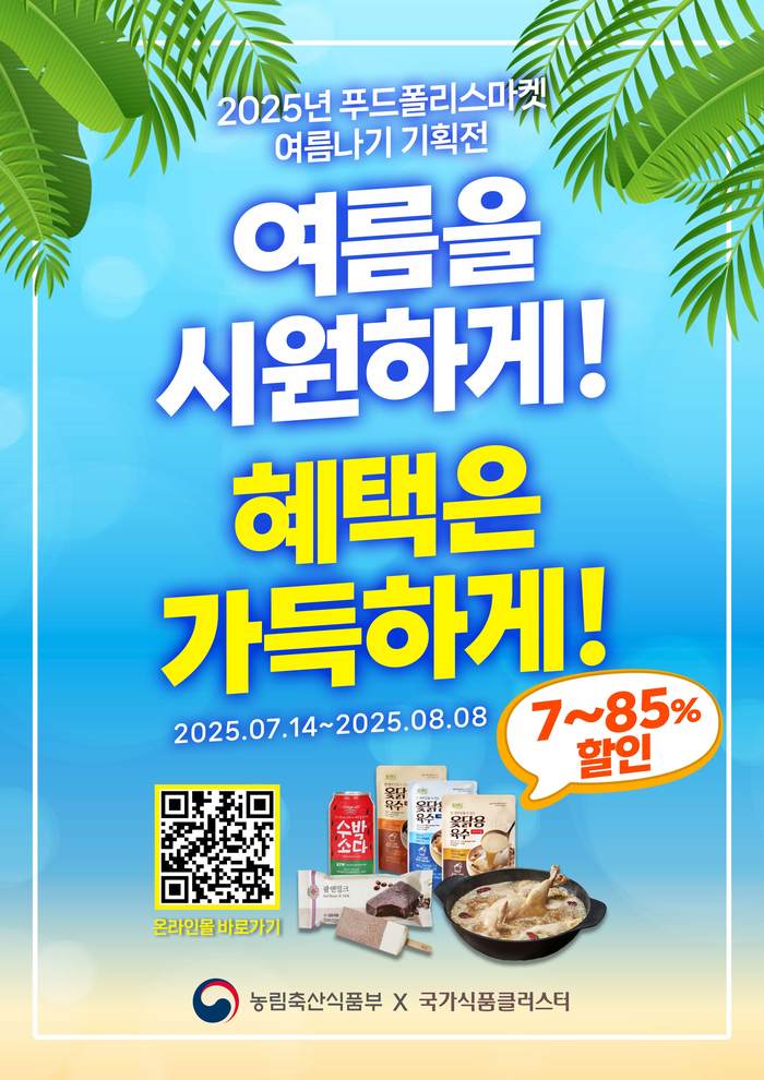 [스포츠서울ㅣ김기원기자]한국식품산업클러스터진흥원(이사장 김덕호, 이하 ‘식품진흥원’)이 운영하는 푸드폴리스마켓에서 무더운 여름을 맞아 ‘여름나기 기획전’을 오는 7월 14일부터 8월 8일까지 연다고 밝혔다.