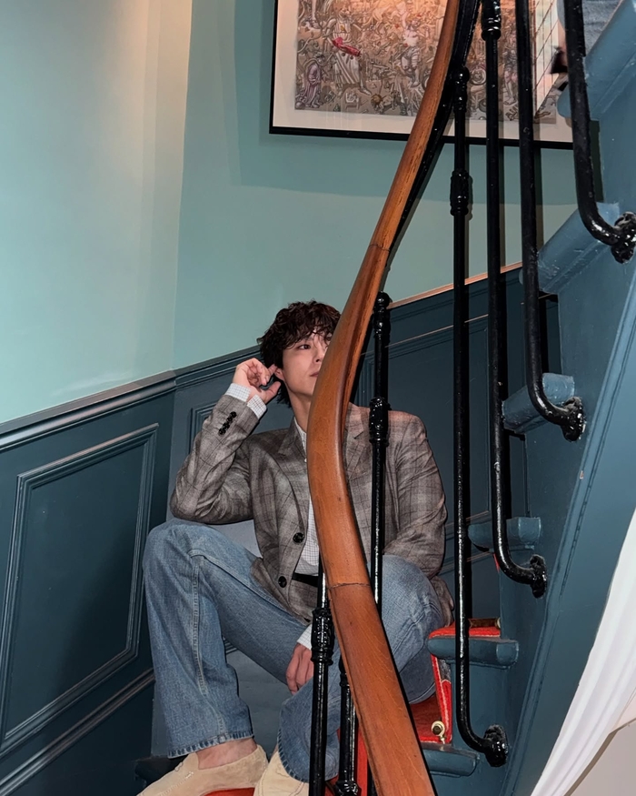 우드톤 계단과 발코니 등 다양한 공간에서 포즈를 취하며 자유로운 감성을 표현했고 자연광과 실내 조명이 어우러진 사진 속에서 박보검 특유의 부드러운 카리스마와 깊이 있는 눈빛이 돋보였다.