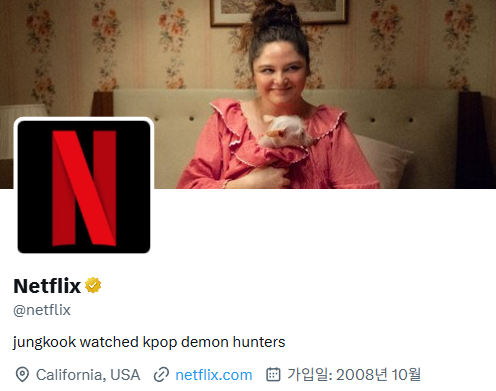 정국의 과몰입에 넷플릭스도 응답했다. 넷플릭스는 공식 SNS 프로필란에 “정국이 ‘케이팝 데몬 헌터스’를 봤다(jungkook watched kpop demon henters)‘라는 글귀를 적어 눈길을 끌었다.