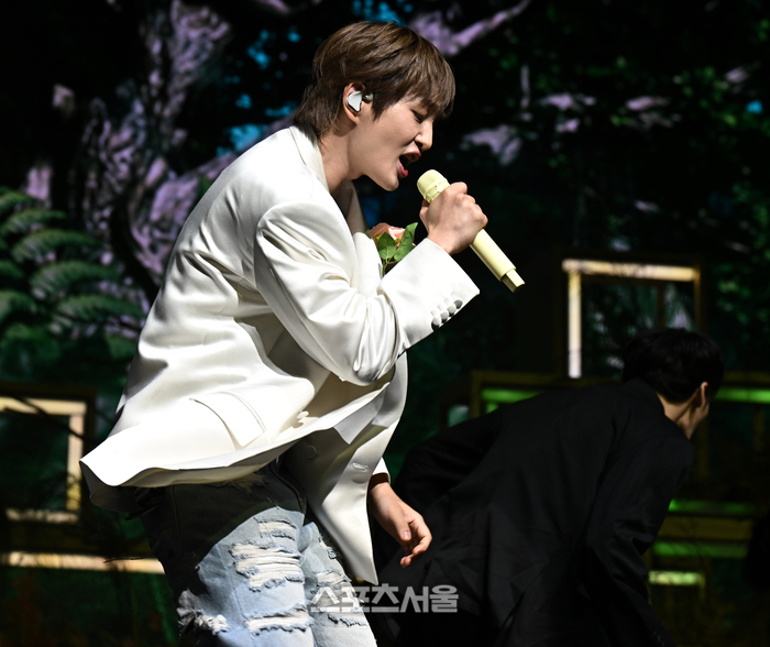 [스포츠서울 글·사진 | 이주상 기자] 세계적인 보이그룹 샤이니의 멤버인 온유가 15일 서울 영등포구에 있는 명화라이브홀에서 진행된 자신의 두 번째 정규앨범 ‘퍼센트’(PERCENT)‘ 쇼케이스에서 타이틀곡 ’애니멀(ANIMALS)‘을 열창하고 있다.