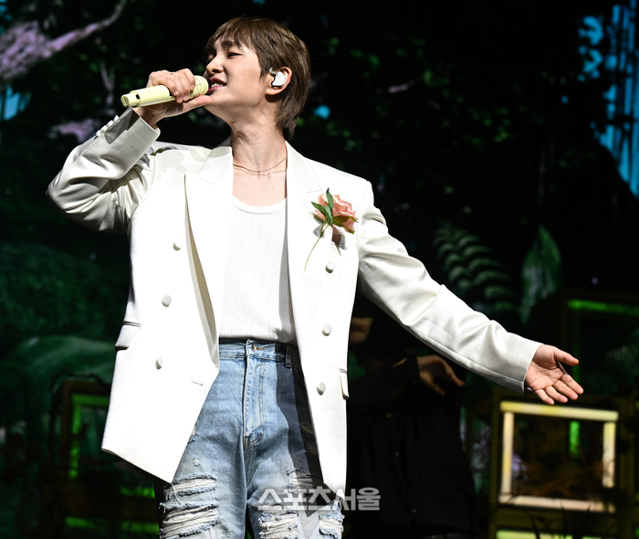 [스포츠서울 글·사진 | 이주상 기자] 세계적인 보이그룹 샤이니의 멤버인 온유가 15일 서울 영등포구에 있는 명화라이브홀에서 진행된 자신의 두 번째 정규앨범 ‘퍼센트’(PERCENT)‘ 쇼케이스에서 타이틀곡 ’애니멀(ANIMALS)‘을 열창하고 있다.