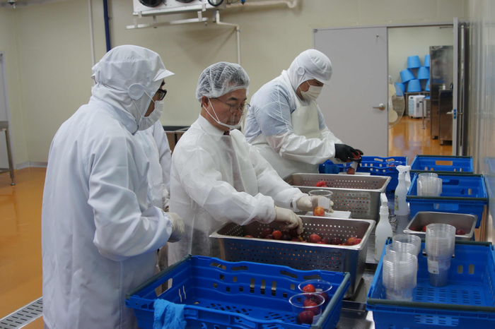 [스포츠서울ㅣ춘천=김기원기자]육동한 춘천시장이 15일 춘천지역먹거리통합지원센터를 방문해 ‘초등돌봄교실 과일간식 지원사업’ 작업 현장을 점검하고 과일 간식 포장 작업에 참여했다.