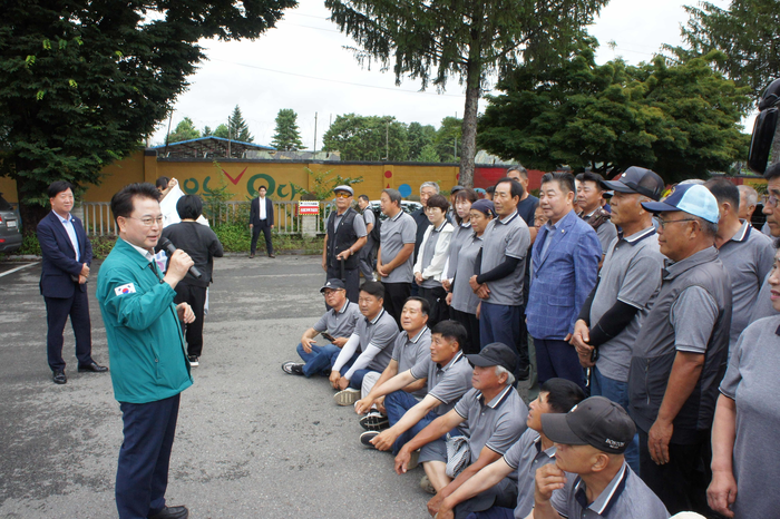[스포츠서울ㅣ춘천=김기원기자]육동한 시장이 15일 한국쌀전업농 강원특별자치도 대회에 참가하는 춘천시 쌀전업농회원들을 만나 참가자들을 격려했다.