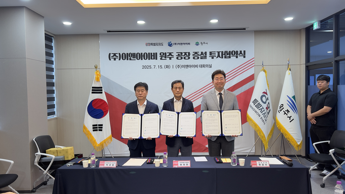 이날 협약식에는 원강수 원주시장, 박광용 강원특별자치도 산업국장, 이희만 ㈜이앤아이비 대표이사 등이 참석했다.