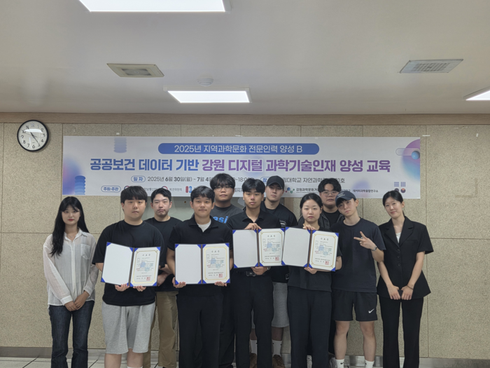 [스포츠서울ㅣ춘천=김기원기자]강원과학문화거점센터(정대현 센터장(강원연구원 현진권 원장))와 한림대학교 데이터과학융합연구소(연구소장 박현숙 교수)는 지난 6월 30일(월)부터 7월 4일(금)까지 5일간 강원특별자치도 도민을 대상으로 「공공보건 데이터 기반 강원 디지털 과학기술인재 양성 교육」을 공동 운영했다.