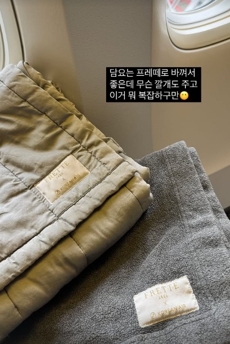 이어 “담요는 F사로 바뀌어서 좋은데, 깔개도 주고 이거 뭐 복잡하구만”이라며 기내 서비스에 대해서도 혼란스러운 심경을 전했다.