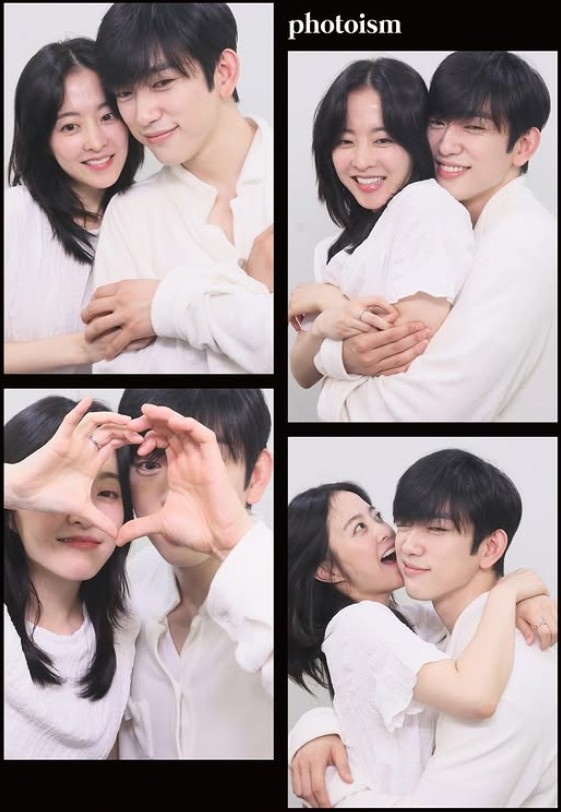공개된 사진 속 두 사람은 흰 셔츠 차림으로 얼굴을 맞대고, 장난스럽게 볼을 잡거나 백허그를 나누며 ‘현실 커플’ 못지않은 케미를 자랑한다.