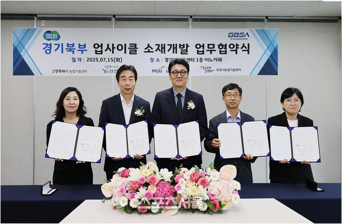 〔스포츠서울│수원=좌승훈기자〕경기도경제과학진흥원은 15일 광교 바이오센터에서 ‘경기북부 업사이클 바이오소재 산업’ 육성을 위해 고양시·연천군·파주시·포천시 농업기술센터와 업무협약을 체결했다.