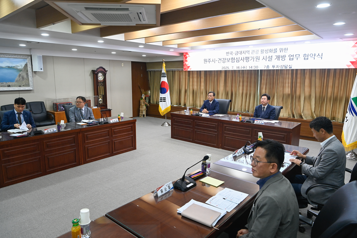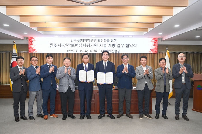 [스포츠서울ㅣ원주=김기원기자]원주시와 건강보험심사평가원은 16일 오후 2시 30분 시청 7층 투자상담실에서 반곡∼금대지역 관광 활성화를 위해 지역사회의 공공자원을 활용하는 ‘시설개방 업무협약’을 체결했다.