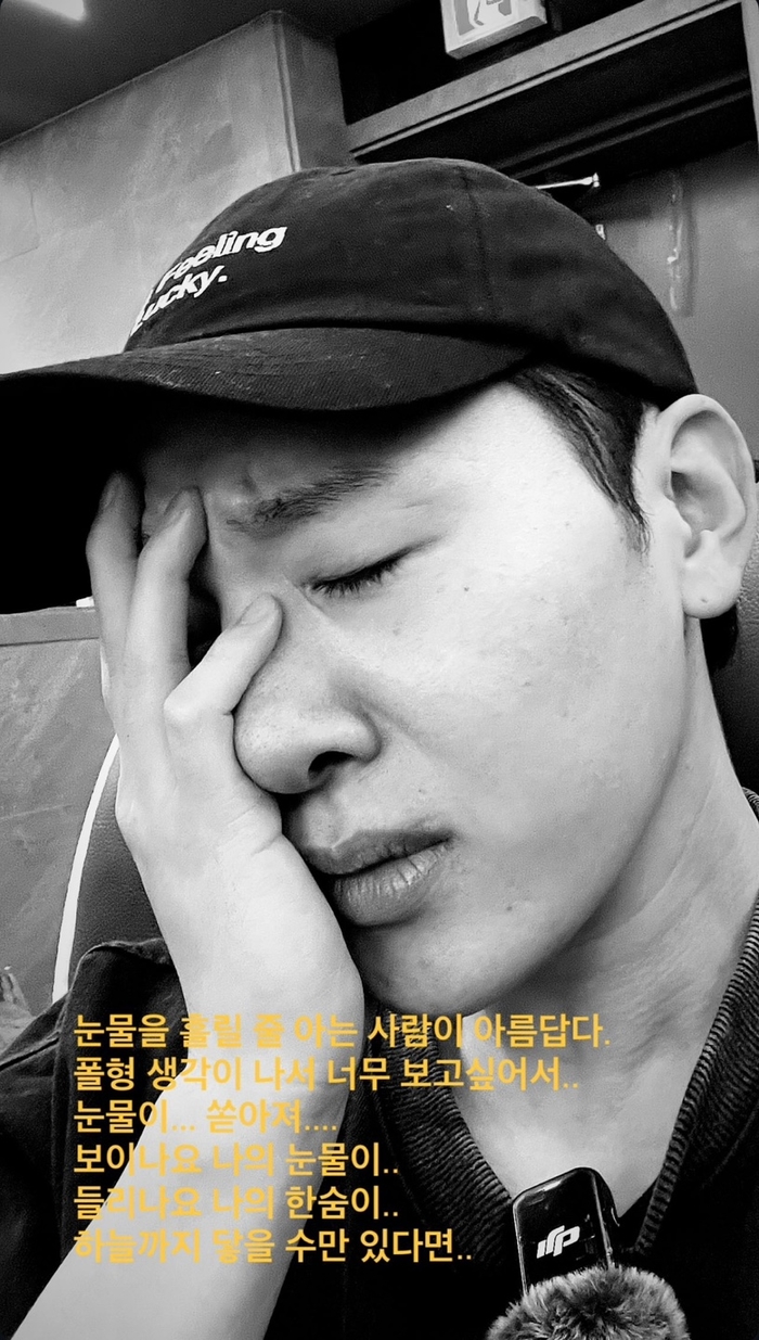 그를 울린 이는 다름 아닌 가수 폴킴이었다. 김민석은 “폴형 생각이 나서 너무 보고 싶어서... 눈물이 쏟아져... 보이사나요. 나의 눈물이... 들리나요. 나의 한숨이... 하늘까지 닿을 수만 있다면...”이라며 애절한 발라드곡의 가사 한 소절 같은 글을 남겼다.