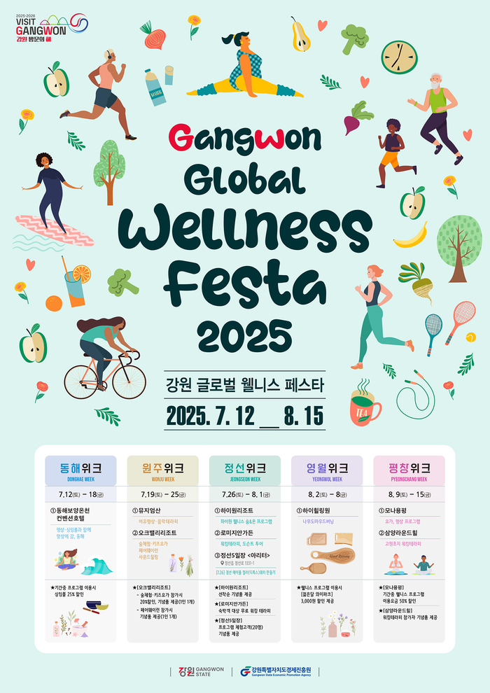 ‘2025∼2026 강원 방문의 해’를 맞아 강원특별자치도가 주관하는 이번 페스타는 7월 12일(토)부터 8월 15일(금)까지 약 한 달간, 원주·동해·영월·평창·정선 등 5개 시군에서 진행된다.