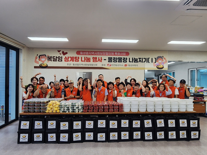 [스포츠서울ㅣ김기원기자]횡성군지역사회보장협의체(민간위원장 박성철, 공공위원장 최동섭)는 초복을 맞아 17일 저소득 및 취약계층 70가구를 대상으로 삼계탕 나눔 행사를 진행한다고 밝혔다. 이번 행사는 협의체의 특화사업인 ‘몰랑몰랑 나눔지기(Ⅰ)’의 일환으로 마련됐다.