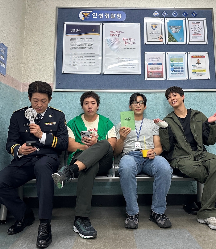 운동장에서 환하게 미소 짓고 포즈를 취하거나, 경찰서 휴게 공간에서 편안하게 앉아있는 모습, 야경을 배경으로 밝은 표정으로 단체 포즈를 취하는 등 유쾌하고 훈훈한 팀워크가 엿보인다. 촬영장과 일상에서 자연스럽게 어울리는 배우들의 모습은 ‘굿보이’ 팀의 끈끈한 의지를 느끼게 한다.