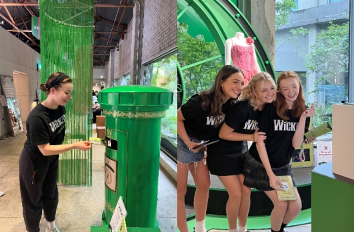 지난 12일 개막한 ‘위키드’ 내한 공연의 ‘엘파바’ 역 조이 코핀저를 비롯한 10명의 배우는 실제 무대와는 또 다른 에메랄드 시티에서 색다른 경험을 즐겼다. 이들은 ‘글린다’의 버블 머신 등 작품의 주요 장면에서 영감을 받은 다양한 콘셉트존과 ‘엘파바’의 그린 컬러, ‘글린다’의 핑크 컬러를 테마로 꾸며진 팝업 공간에서 오즈 시민증을 받을 수 있는 사진을 촬영했다. 또 팬들이 배우들에게 보내는 소원 메시지를 직접 체험하며 응모에도 동참했다.