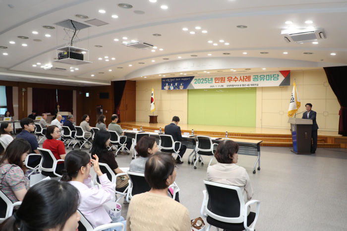 [스포츠서울ㅣ춘천=김기원기자]강원특별자치도는 7월 17일(목) 오후 2시에 도청 별관 4층 회의실에서 도 및 시군 민원 관련 공무원 등 100여 명이 참석한 가운데 「2025년 민원 우수사례 공유마당」을 개최했다.