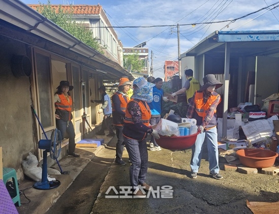 봉사자들은 빗물에 젖은 가재도구와 집기류를 수거하고 집안 청소, 전기안전점검 등을 실시했다.