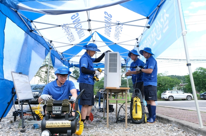 18일부터 수해 복구 특별서비스팀을 현장에 파견, 이동형 서비스센터를 설치해 가전제품 및 휴대전화 무상점검 등 수해 복구 특별점검 서비스를 진행 중이다. 침수 피해가 집중된 지역엔 서비스 엔지니어들이 피해 가구를 직접 순회하며 해당 서비스를 이어가고 있다.