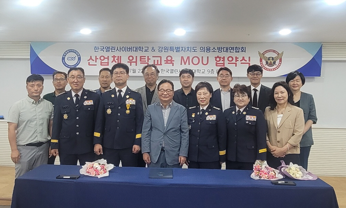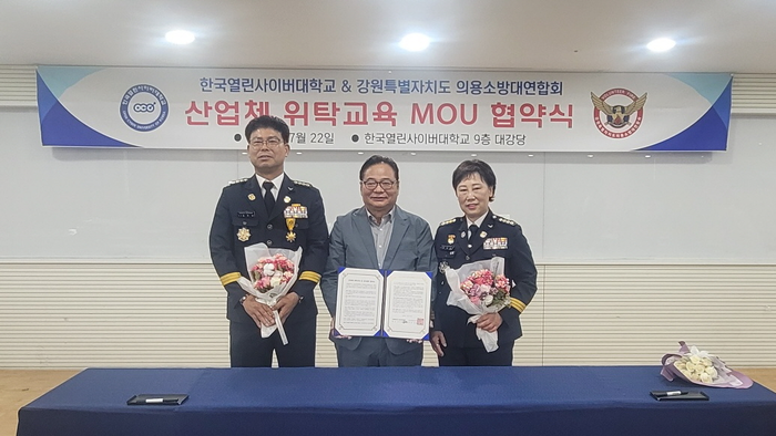 [스포츠서울ㅣ춘천=김기원기자]강원특별자치도 소방본부(본부장 김승룡)는 22일 서울 중랑구에 위치한 한국열린사이버대학교에서 강원특별자치도 의용소방대연합회 및 한국열린사이버대학교와 교육협력 협약을 체결했다고 밝혔다.