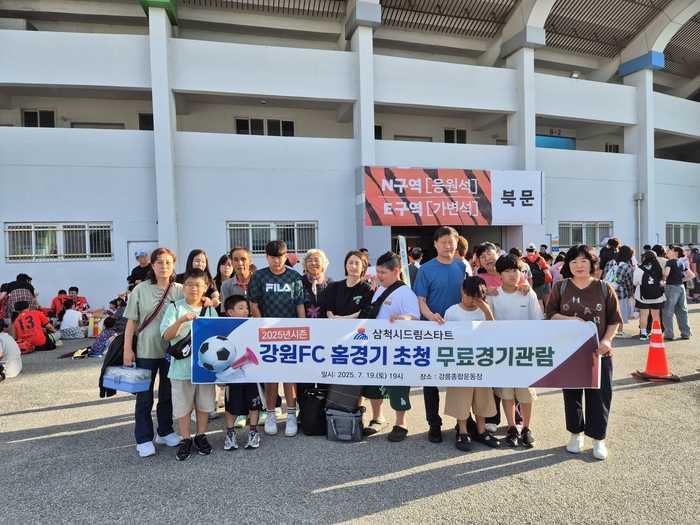 [스포츠서울ㅣ김기원기자]삼척시드림스타트는 지난 7월 19일 오후 7시, 강릉하이원아레나에서 열린 ‘2025 강원FC vs 대전하나시티즌’ 홈경기에 맞춰 「삼척시의 날」 행사 일환으로 드림스타트 아동과 가족을 초청해 무료 관람 행사를 진행했다.
