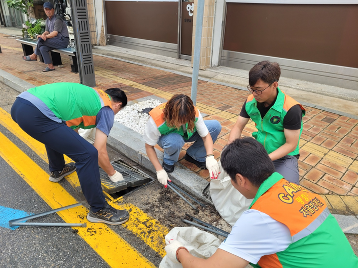 특히, 통행량이 많은 지역과 시가지 주변을 중점적으로 살펴보며, 막힌 우수받이의 쓰레기, 흙더미 등을 제거해 빗물 흐름이 원활하게 유지되도록 정비 작업을 진행했다.