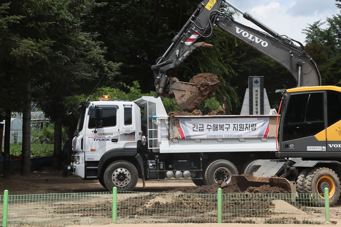 [스포츠서울ㅣ춘천=김기원기자]강원특별자치도(도지사 김진태)는 집중호우로 산사태 및 도로 유실 등 큰 피해를 입은 경기도 가평군의 지원 요청에 따라, 도 보유 장비와 인력을 긴급 투입해 신속한 복구 지원에 나선다.