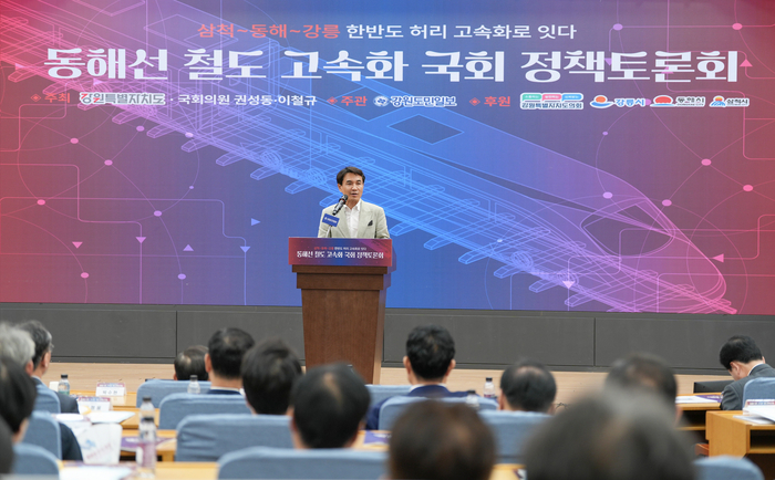 이번 토론회는 도와 권성동, 이철규 국회의원실이 공동으로 주최했으며, 김진태 도지사를 비롯해 이철규(동해·태백·삼척·정선), 한기호(춘천·철원·화천·양구을), 박정하(원주갑), 유상범(홍천·횡성·영월·평창), 이양수(속초·인제·고성·양양), 송언석(경북 김천), 최혁진(무소속·비례) 국회의원, 박수현 국정기획위원회 균형성장특별위원장, 국토교통부, 국가철도공단, 강릉·동해·삼척시 관계자 등 100여 명이 참석해 고속화 철도 조기 추진 필요성에 뜻을 모았다.