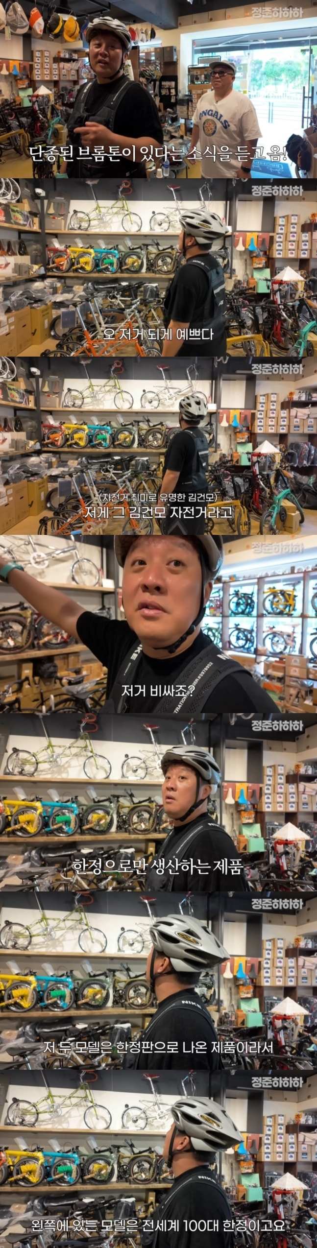해당 영상에서 정준하는 영국 프리미엄 접이식 자전거 브랜드 매장을 방문해 새로운 모델을 살펴보던 중, 매장 가장 높은 곳에 전시된 제품을 보고 “되게 예쁘다”고 감탄했다.