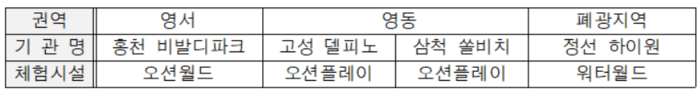 또한, 체육시설 인프라가 상대적으로 부족한 군 단위 지역의 유·청소년도 쉽게 참여할 수 있도록 영서권(홍천 비발디파크), 영동권(고성 델피노·삼척 쏠비치), 폐광지역(정선 하이원) 등 지역별 거점 리조트를 중심으로 강좌를 운영할 계획이다
