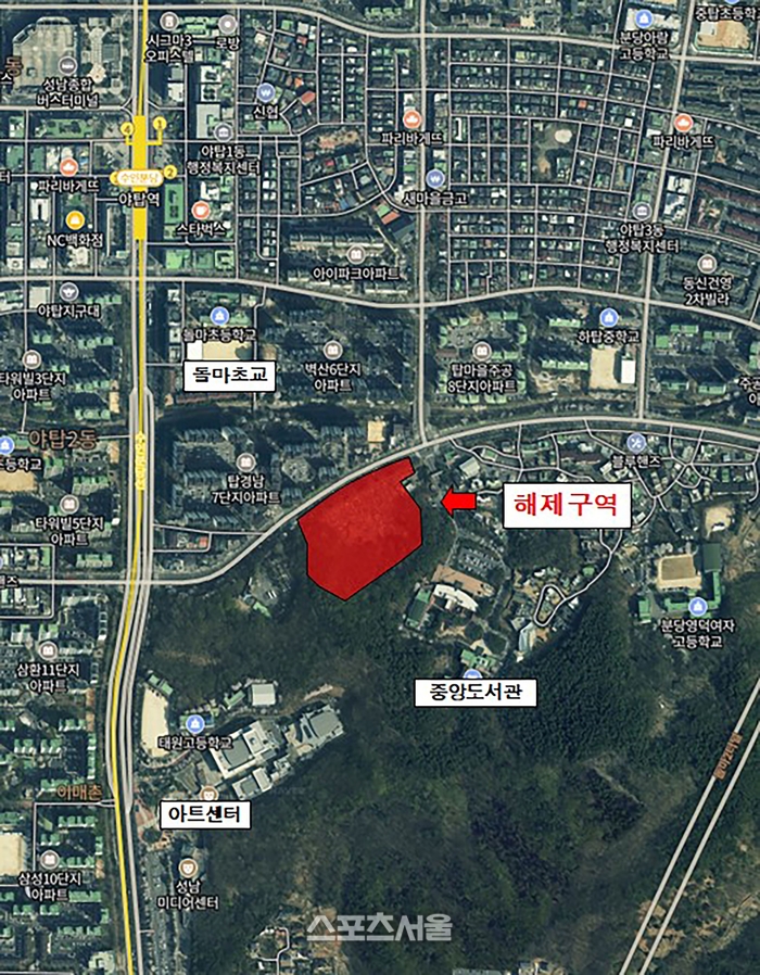 〔스포츠서울│성남=좌승훈기자〕경기 성남시는 국토교통부가 분당 재건축 이주단지 후보지로 발표했던 야탑동 621번지 일원(면적 0.03㎢)이 23일부로 토지거래허가구역에서 해제됐다고 24일 밝혔다.