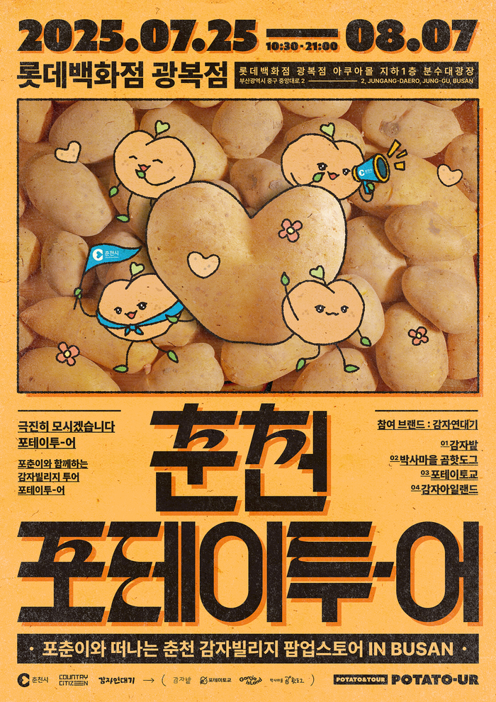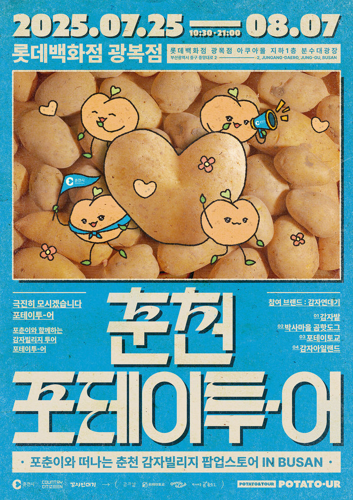 춘천시는 “춘천의 관광 자원과 감자 연대기의 동반 홍보는 유동인구가 많은 부산 중심 상권에 춘천의 매력을 알리는 기회가 될 것”이라며 “감성형, 참여형 콘텐츠를 통해 젊은 세대와의 접점을 넓히겠다”고 말했다.
