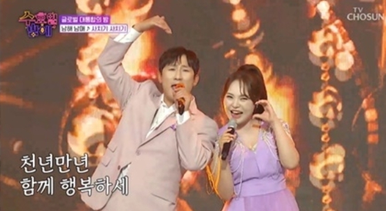 미스김과 나성도는 24일 방송된 TV조선 ‘트롯 올스타전: 수요일 밤에(이하 수밤)’에서 이다도시, 크리스티나, 완이화 등으로 구성된 ‘국제선’ 팀에 합류, 남해 남매만이 뽐낼 수 있는 궁합으로 시청자들에게 웃음을 선사했다.