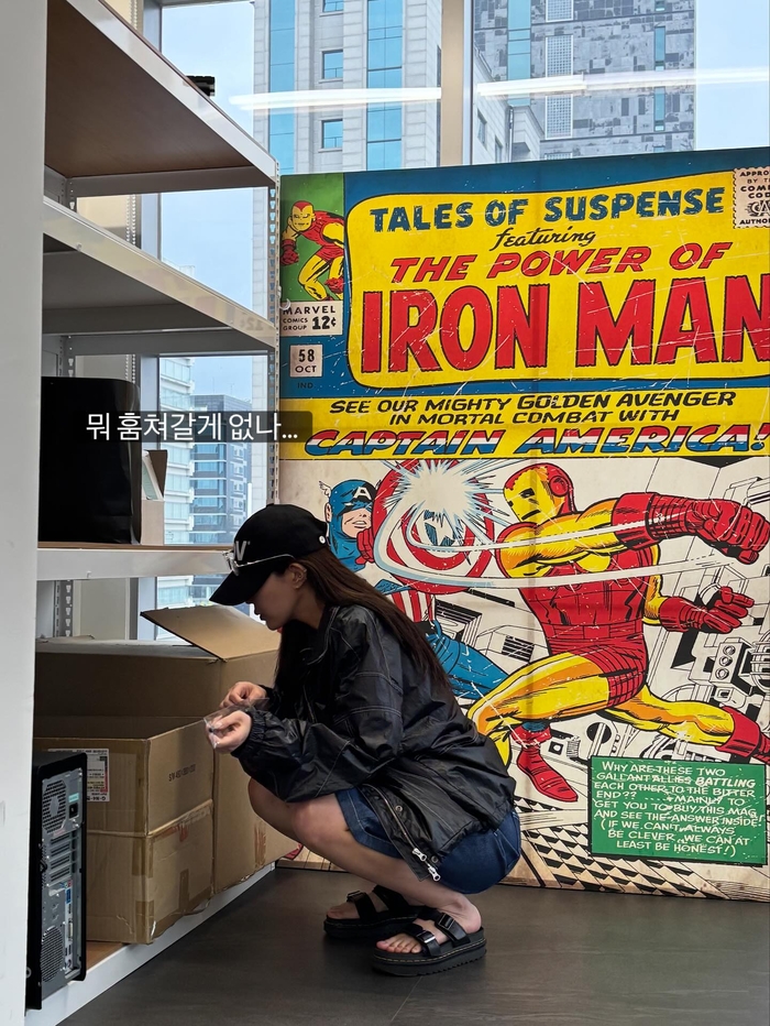 특히 창고를 살피며 “뭐 훔쳐갈 게 없나”라며 사무용품을 들고 나오는 장난기 어린 모습도 보였다. 곳곳에 보이는 대형 아이언맨 만화책 표지 등 독특한 사무실 분위기도 눈에 띈다.