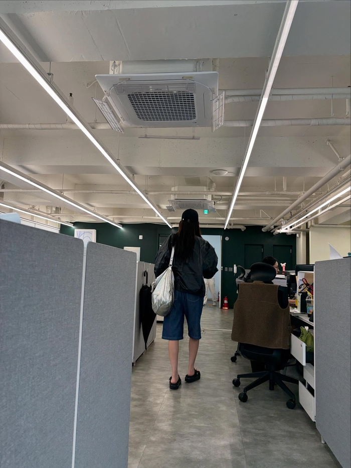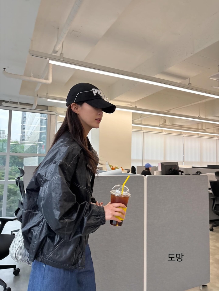 손에는 아이스커피를 들고 사무실을 걷거나, 창가에서 눈치를 보는 모습, 때로는 진지하게 무언가를 찾는 듯한 모습 등 꾸밈없는 일상과 자연스러운 회사 생활이 담겼다.