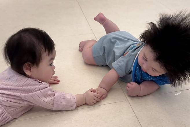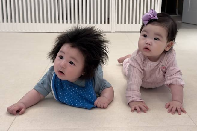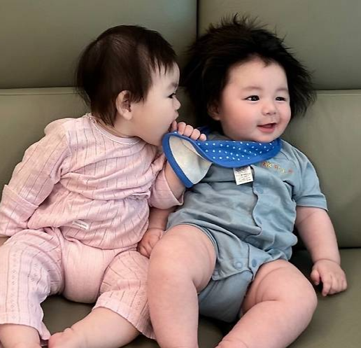 공개한 사진 속에는 박수홍의 딸 재이와 심형탁의 아들 하루가 나란히 함께 한다. 두 아이는 분홍색과 파란색 옷을 입고 앙증맞은 표정을 지으며 보는 이들의 미소를 자아낸다.