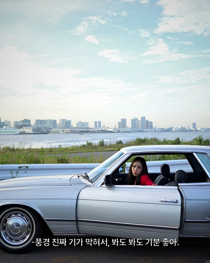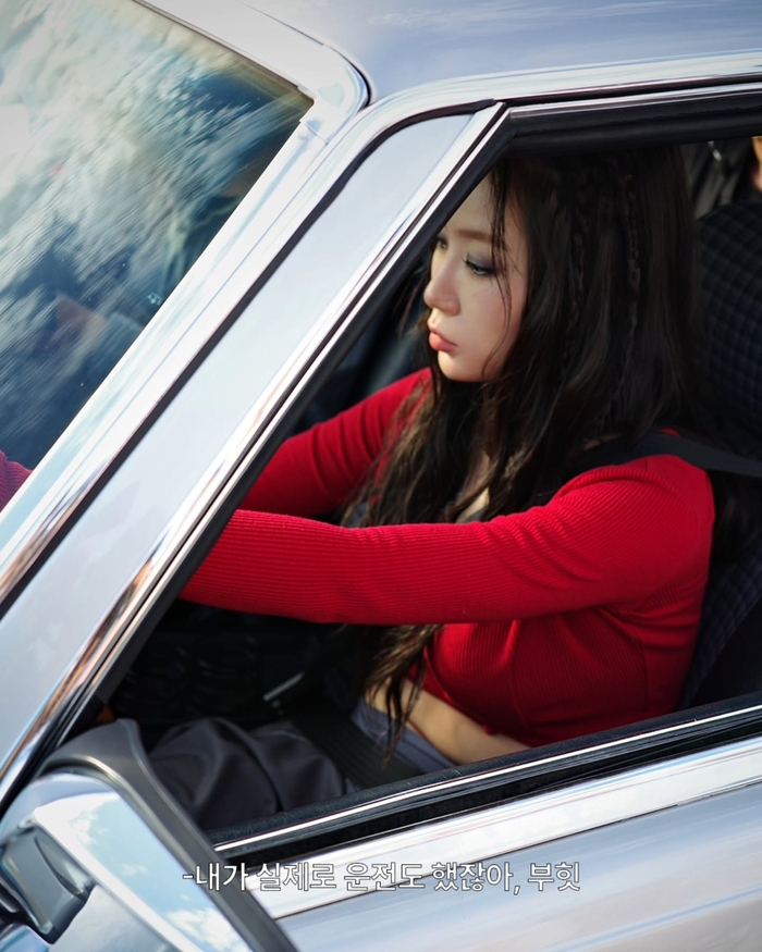 어두운 골목에서 멋스럽고 과감한 스타일링으로 카메라를 응시하는가 하면, 야외에서는 빈티지 클래식카에 앉아 여유로이 도시 풍경을 감상하는 모습도 담겼다. 한 카페에서는 세련된 화이트 블라우스에 헤드폰을 매치해 음악 작업에 열중하는 아티스트의 면모를 보여주고, 또 다른 컷에서는 편안한 티셔츠와 반바지로 자연스러운 매력을 드러냈다.