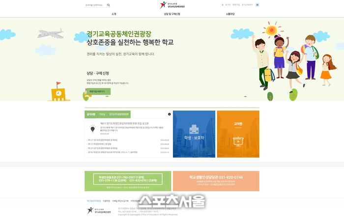 교육활동 중 교직원과 보호자에 대한 권리침해 상담 및 구제 신청은 ‘경기교육공동체인권광장’ 누리집에서 할 수 있다.