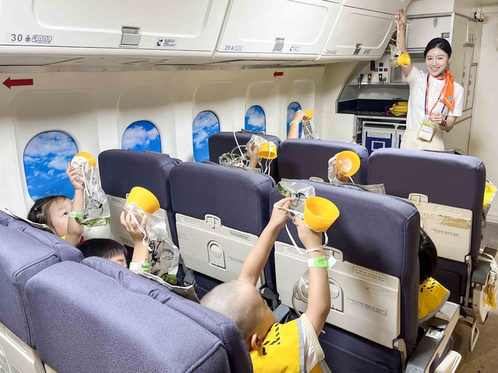 특히 항공기 내부를 유사하게 재현한 모형 기내(MOCK UP)에서 진행된 비상탈출 훈련 시연은 현장 어린이들의 집중을 이끌었다. 어린이들은 승무원의 시범을 따라하며 실제 항공기 상황에 대한 감각을 키우는 뜻깊은 시간을 가졌다.