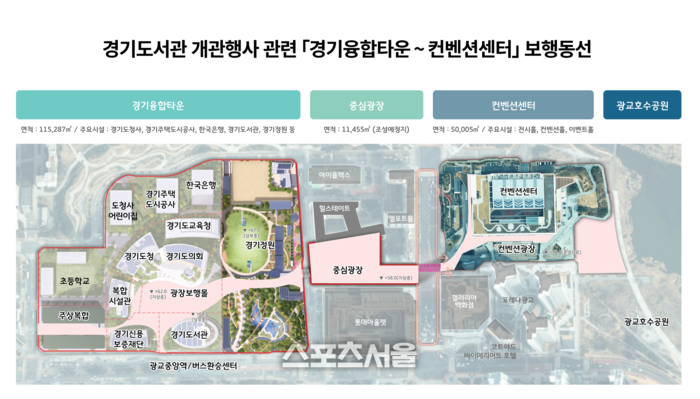 도는 8월 말까지 이런 내용의 ‘경기융합타운~수원컨벤션센터 기반시설 정비사업’을 완료할 예정인데, 오는 10월 경기융합타운과 수원컨벤션센터에서 ‘경기도서관 개관식’, ‘전국도서관대회’, ‘경기도서관 국제컨퍼런스’ 등 대규모 행사가 열린다.