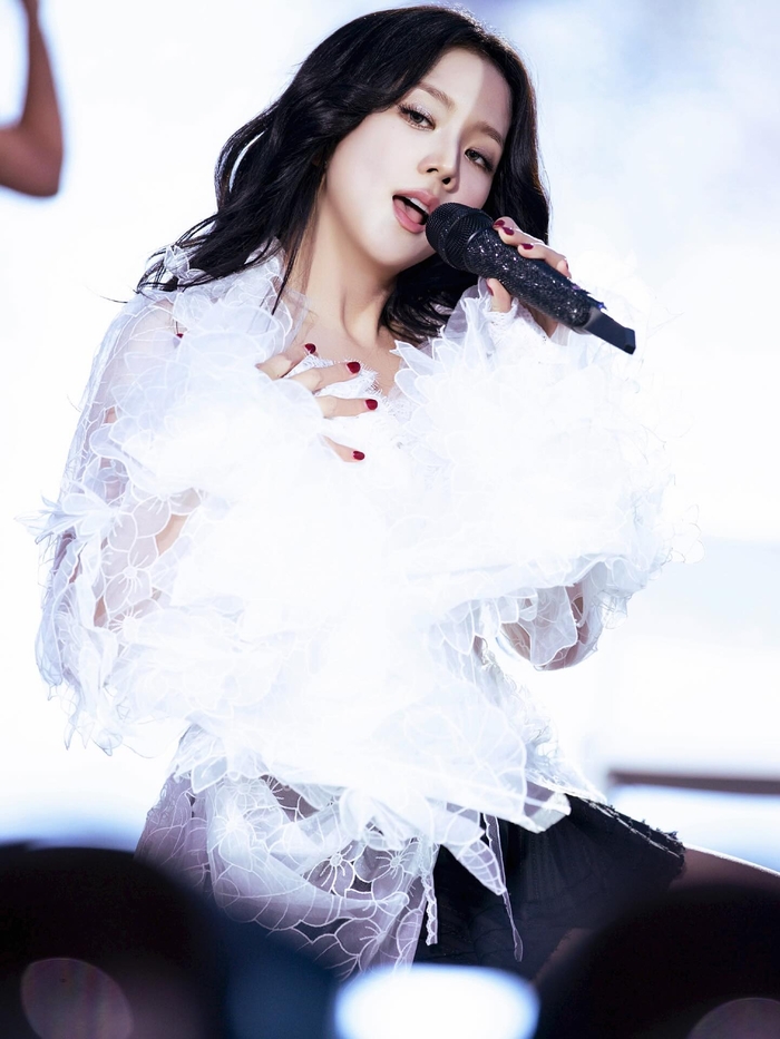공개된 사진 속 지수는 무대 위에서 화려한 의상을 입고 열정적으로 퍼포먼스를 선보이고 있다. 새하얀 플라워 장식이 돋보이는 드레스를 입고 마이크를 손에 쥔 채 집중력 있는 모습, 무대 뒤 대기실에서 블랙핑크 멤버와 함께 다정하게 포즈를 취하는 모습, 그리고 일상 속 자연스러운 셀카 등 다양한 순간이 담겼다. 특히 지수의 세련된 스타일링과 무대 위 빛나는 존재감이 눈길을 끈다.