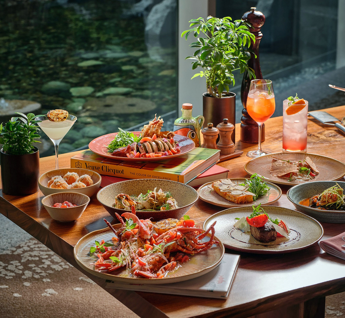 ▲애피타이저는 제주 딱새우, 완도산 전복, 소프트쉘 크랩 등으로 구성된 해산물 샐러드 ‘네로 디 마레’, 블랙 타이거 새우 크루도, 부라타와 에어룸 토마토를 이용한 토마토잼을 곁들인 밀푀유 스타일의 카프레제, 30년산 발사믹과 고소한 숙성 파마산이 더해진 클래식 브루스게타 중 선택할 수 있다.