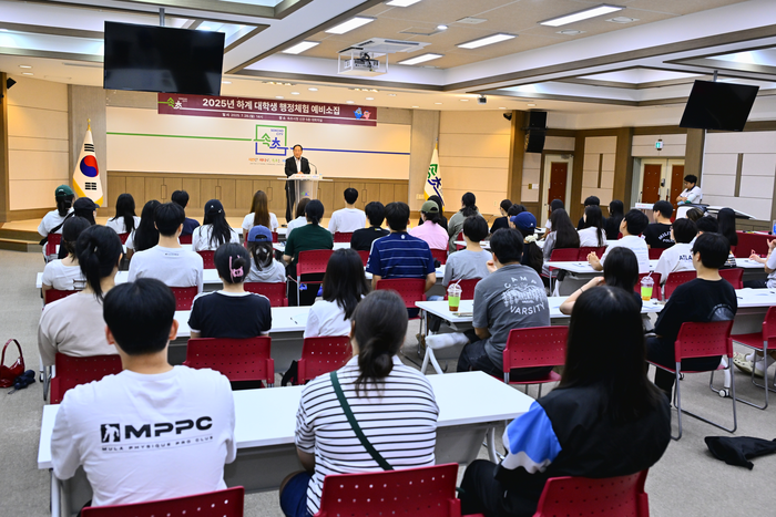 이번 2기 행정체험은 총 54명의 대학생이 참여하며, 오는 8월 26일까지 공원녹지과 등 8개 부서(기관)에서 행정업무 지원 활동을 펼칠 예정이다.
